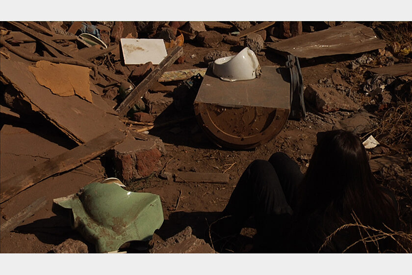 Eine Frau wandert durch eine Landschaft voller Schutt und Abfall. Sie sammelt aus dem was schon verloren scheint Dinge, die möglicherweise noch irgendeinen Wert haben könnten und häuft ihre gefundenen Objekte auf. Nachdem ich selbst das Erdbeben in Chile im Februar 2010 mit­erlebt hatte, fallen mir in vielen Gegenden Santiagos immer wieder große auftürmte Schutt- und Müllhaufen auf. Die Naturkatastrophe verschärfte die sozial bedrückende Situation der Ärmsten in der Stadt noch zusätzlich und so beobachte ich in der Folge des Erdbebens viele Müllsammler, die sich durch die Berge von Schutt und Müll arbeiten auf der Suche nach etwas Verwertbarem. Dieses existentielle Motiv lässt mich nicht mehr los. In Cachureando (auf Deutsch stöbern) begebe ich mich selbst als Sammlerin auf die Spuren dessen was Erdbeben und Wegwerfgesellschaft zurückließen.