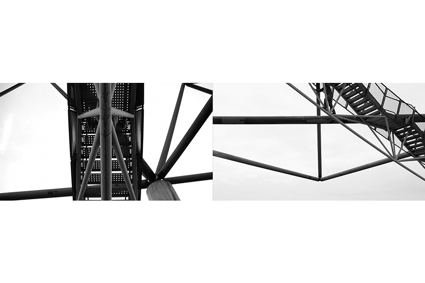 Vertigo Pyramidal revolves literally around a pyramidal monument, the tetrahedron in Bottrop, Germany. The tetrahedron is a structure that rises in the middle of the industrial landscape of the Ruhr area and functions as a viewing platform. This region, known for its flourishing past coal mining industry, is today a paradigm for the failure of a civilizational dream. The formerly celebrant memorial and its view to the industrial landscape ressamble today a relic of an unfulfilled promise, a non occurred future. Similarly to the astronauts in Tarkovkys film Solaris, left behind in a spaceship, Redondo moves herself in circles around the obsolete architecture, the monument is dissected, fragmented and constantly reassembled through her performance. The artist intentionally neglects any gaze to the surrounding area and thus reverses the function of the labyrinth-like structure. The remaining symbol of a former thriving economy mutates into an abstract Parcours. Once free of its original character, the monument is transformed into a dream-like travel into our subconscious, whose architecture is once detached from its surroundings and later from its rigid structure and its own material.