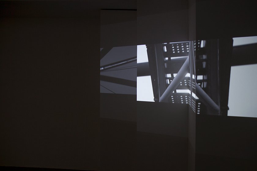 Vertigo Pyramidal is projected as a two-channel video on a leporello-like structure. The perspectives multiply and thereby open up the view of an entirely sculptural landscape.
